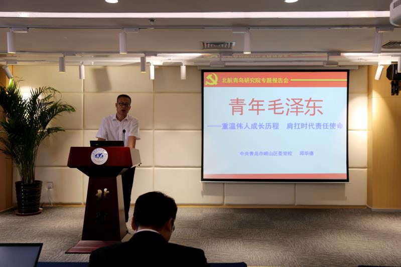 青年兴则国家兴,青年强则国家强。针对青年学生和教工比例较高的特点,北航青岛研究院党总支特别邀请了崂山区委党校邱华德讲师,以《青年毛泽东》为题为大家授课,旨在引导广大青年党员和群众从伟大领袖毛主席的成长中汲取营养,启迪思想,修正航向,自觉把个人追求融入全面建成小康社会的伟大目标。