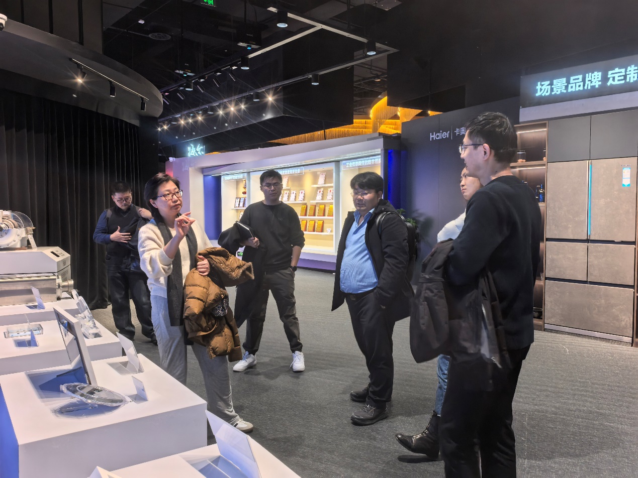 调研组首先参观了海尔生态体验中心,深入了解海尔在智慧家庭、工业互联网、大健康等领域的创新成果。在座谈会上,海尔集团战略发展部副总经理王袭详细介绍了海尔智家、卡奥斯工业互联网平台及大健康三大核心业务板块的布局。北航青岛研究院介绍了计算机视觉与图像处理、磁传感芯片、智能算法等研究方向。院长张德明表示,研究院依托北航学科优势,致力于服务青岛产业升级,期待与海尔在关键技术研发、成果转化上形成合力。副院长李甲教授、微电子分院朱大鹏教授分别介绍了团队在低质数据可视计算、磁存储及磁传感等技术研究进展。海尔智家homeGPT技术负责人田云龙、卡奥斯天智工业大模型负责人杨健分别就AI大模型在智能家居场景的落地、工业互联网平台的智能化升级展开技术分享。双方一致认为,海尔丰富的产业场景与北航的前沿技术储备具有高度互补性。