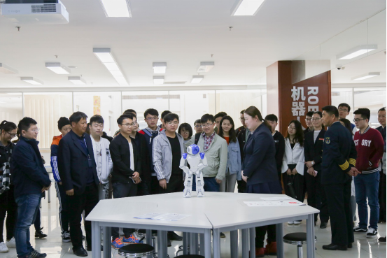 怀揣着对这所颇为神秘的院校的好奇,9点整在解放军同志们的引领下,师生们的参观之旅正式开始。初至潜艇学院,同学们便被威严的建筑和建筑前庄严肃穆的标语深深吸引。通过观看海军潜艇学院的介绍视频,大家不仅从各方面对身处的院校有了整体而清晰的认识,更为65年来海军潜艇学院流传下的报国精神与民族情怀而深深打动。在接待人员的精心安排下全体师生被分为两队,以不同顺序参观了学院的智能机器人、导弹和鱼雷模型、海况实时监控、学员训练基地和实验室等技术场所和实验基地,感受到新时代下与时俱进的海军技术无不彰显着大国风范,民族自豪感在全体师生心中油然而生。而后参观的餐厅、宿舍和健身房更是处处展现着国家对于现代化军队的重视和珍惜。最后,全体师生与海军潜艇学院接待军官合影留念。