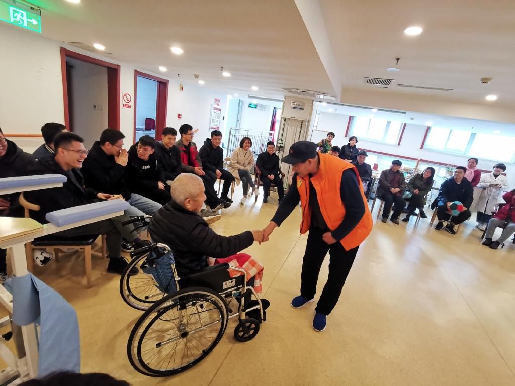 在研究生部刘莎莎老师的主持下,同学们首先向老人简单做了自我介绍。随后,大家边与老人聊天边玩起了“击鼓传花”的游戏。大家都积极参与,为给老人带来欢乐,倾情献上了自己最拿手的节目,送出自己最真挚的祝福。现场的老人和工作人员深受感染,也纷纷上台互动,表达对同学们的衷心感谢。活动在载歌载舞的欢快氛围中圆满结束,老人们的脸上都洋溢着喜悦的笑容。